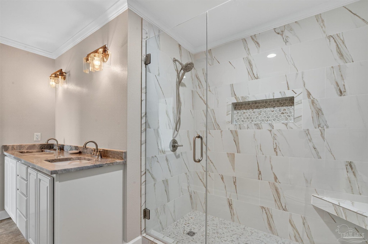 • Five-Piece Master Bath: Steam shower, natural light, and scenic mature trees